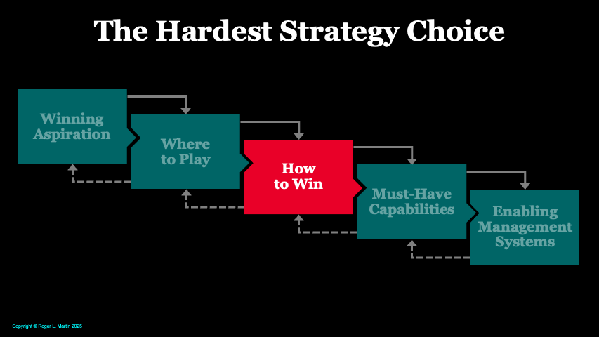 To be a great strategist, you need to master HTW. A strategy can’t be great without a great heart of strategy — the WTP/HTW combination — and of course that pair can’t be great without a uniquely powerful and well-matched HTW. Done poorly, HTW undermines strategy — making it into a blah playing-to-play. And frankly, life is too short for you to waste years of your worklife playing-to-play.